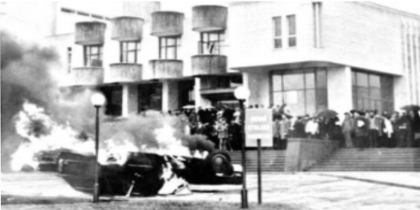 US ambassador Komer’s car burning in front of Rektorluk