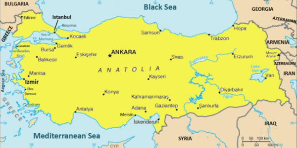Bulgaria and Greece border Türkiye to its northwest and western in Europe. Georgia is on its northeastern border along the Black Sea while Armenia and Iran are along the eastern border. As small slice of Azerbaijan in the Nakhchivan region also touches the Türkish border between Armenia and Iran. Iraq is towards southeast and Syria is on its southern border.