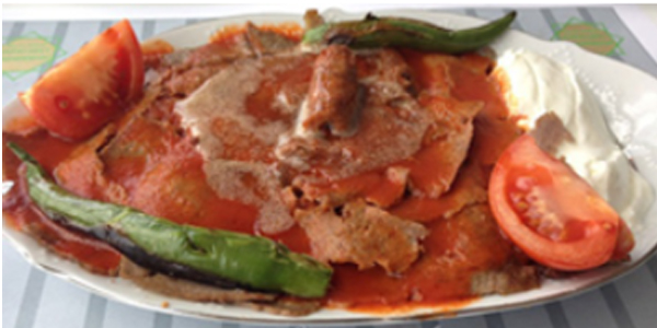 There is a huge variety of different types of kebabs, maybe more than 110 types. The ones that are most widely known are Adana kebap, iskender kebap, döner kebap, şiş kebap, tavuk şiş kebap, tandır kebap, beyti kebap, taş kebap, Urfalı kebap, patlıcan kebap, cağ kebap, ciğer kebap, testi kebap, fırın kebap, yoğurtlu kebap. The smaller restaurants known as lokanta offer a huge variety of other food with a mix of meat and vegetables. Most of the dishes have tomato and eggplant and therefore they are able to avoid the use of spices. Yoghurt is another important component of the dishes. Lahmacun is another favorite which is a special Türkish version of the pizza. It is laced with ground lamb and goat cheese. Kebaps are often served with pide bread, while other foods are eaten with ekmek bread or rice (pilav).